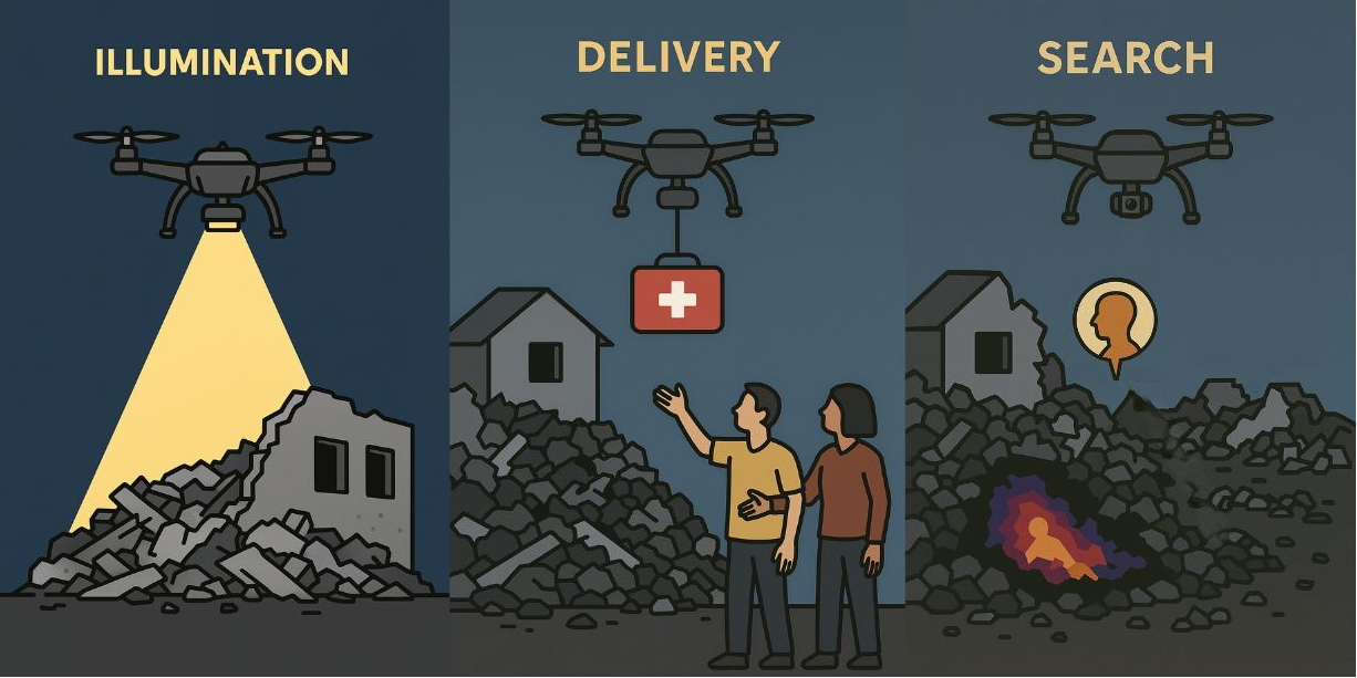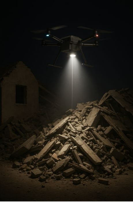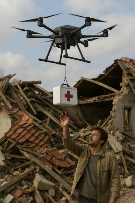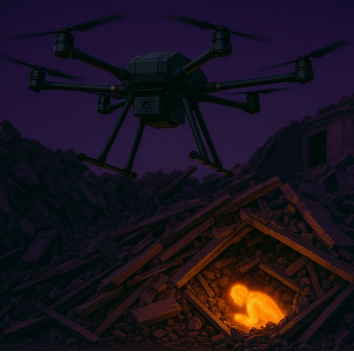 Natural disasters strike without warning. Earthquakes, floods, and wildfires can destroy roads, buildings, and power lines in minutes, and overall, people could get trapped. When cities go dark and communication stops: that’s where drones come in.
