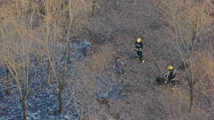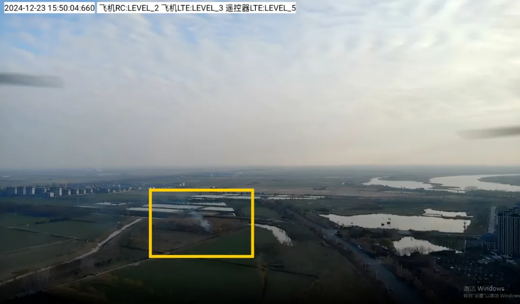 Found that there was smoke rising in the forest on the east side of the park, quickly adjusted the course of the drone and flew to the scene for investigation. Through the drone HD camera picture, it is clearly visible that the forest has an open fire, the fire area is estimated to be about 300 square meters, and there is a trend of outward diffusion.