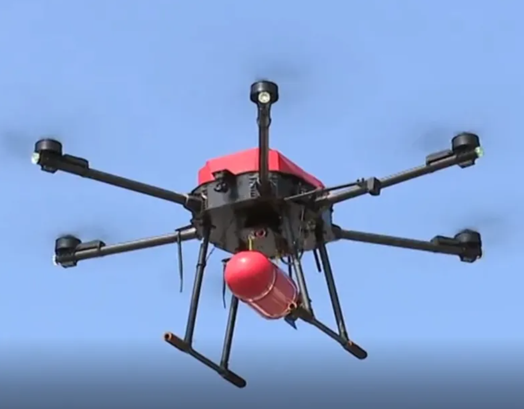 03 Aerial fire suppression: Drones equipped with fire suppression devices can remotely extinguish fires by carrying fire bombs, compressed powder tanks or water belts, which not only improves the efficiency of fire suppression, but also greatly ensures the safety of ground firefighters.